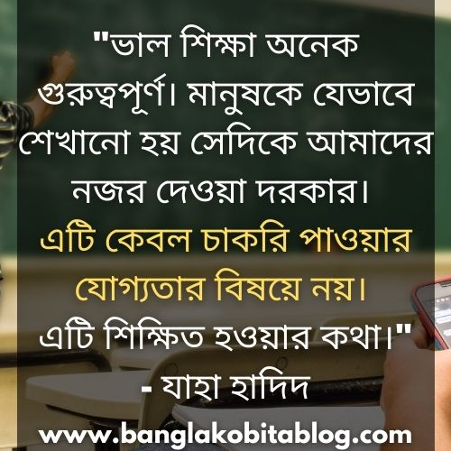 #১৬. “ভাল শিক্ষা অনেক গুরুত্বপূর্ণ। মানুষকে যেভাবে শেখানো হয় সেদিকে আমাদের নজর দেওয়া দরকার। এটি কেবল চাকরি পাওয়ার যোগ্যতার বিষয়ে নয়। এটি শিক্ষিত হওয়ার কথা।”