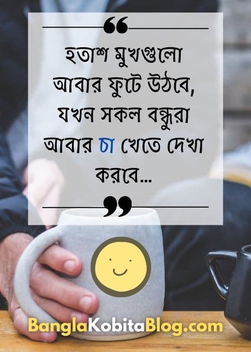 তো বেশ এই ছিল আজগের এই চা নিয়ে কিছু ক্যাপশনের পোস্ট। আশা করছি এই পোস্টটি আপনার ভালো লেগে চে। এই পোস্টটি আপনি আপনার সোশ্যাল মিডিয়া চ্যানেলসগুলিতে শেয়ার করতে পারেন। ধন্যবাদ!
